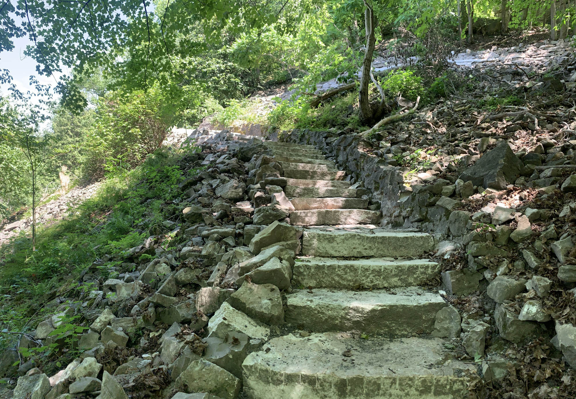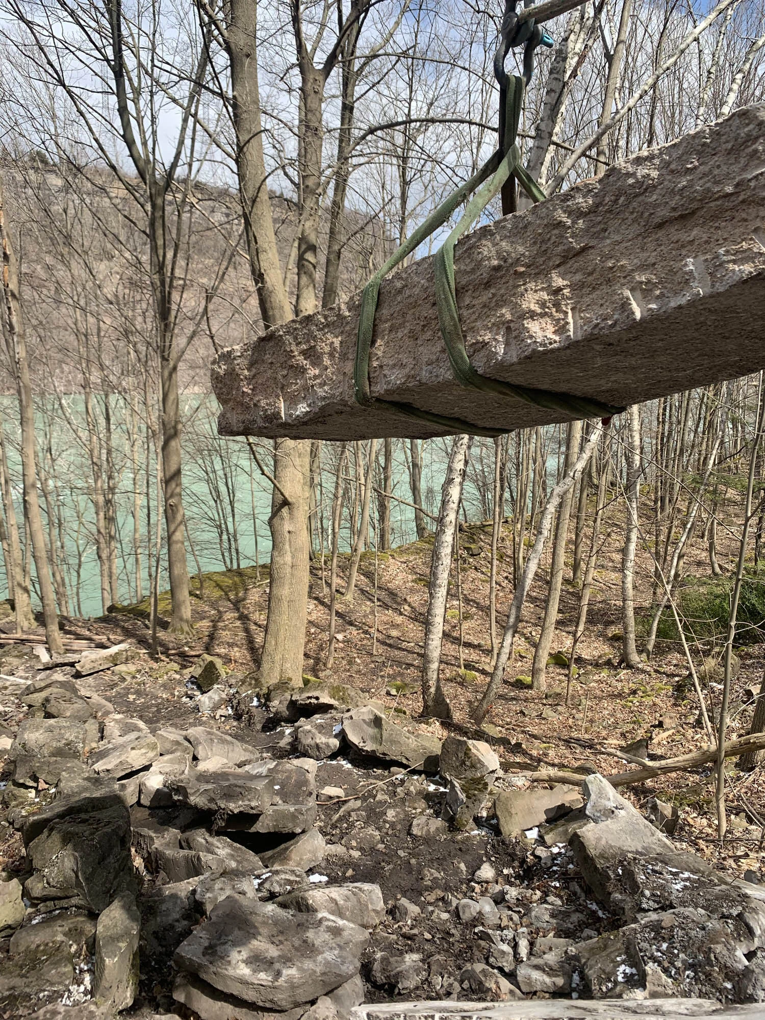 We partnered with Tahawus Trails, LLC, to reconstruct the lower half of the Devil's Hole Stairway restoration project. This project included lowering large stone steps into the gorge using a crane and moving the stones along multiple highline systems. While Tahawus Trails, LLC was the lead contractor, Town 4 Trail Services, LLC shared oversight and project management.